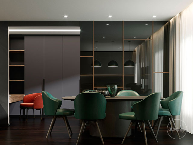 Четырехкомнатная квартира и 4 лоджии: интерьер в темных тонах